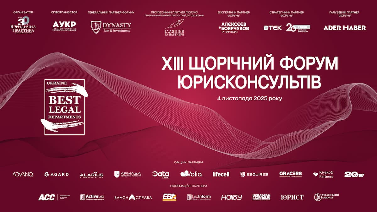 4 листопада 2025 року відбудеться XIII Щорічний форум юрисконсультів, покликаний акумулювати та підсумувати дискусії щодо актуального стану, необхідних і запланованих змін, найближчих перспектив розвитку української економіки та викликів для корпоративних юридичних радників в умовах зміни бізнес-орієнтування.